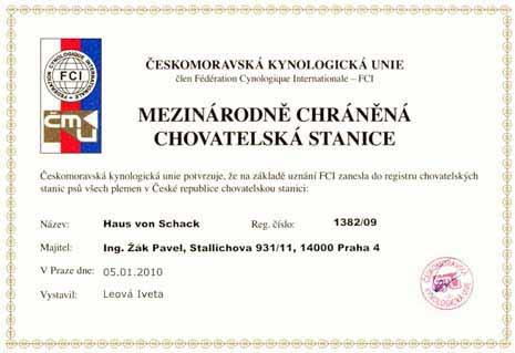 Adresa: Praha 4, Česká Republika Telefon: +42060338510 Zodpovědná osoba: Pavel Žák www: www.hausvonschack-bolognese.ic.cz/ Mail: | Reg. číslo CHS: 1382/09 Certifikát CHS: Zobrazit Certifikát ::: Plánujeme vrh: 20.09.2010 Hodnocení: 92 bodů ze 100 |