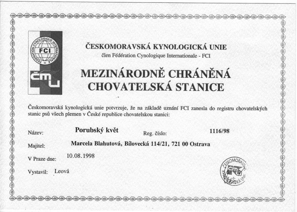 Reg. číslo CHS: 1116/98 Certifikát CHS:Zobrazit Certifikát ::: Plánujeme vrh: 03.10.2010 Hodnocení: 90 bodů ze 100